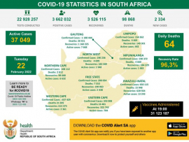 “Today, the NDoH reports 64 deaths and of these, one occurred in the past 24 – 48 hours. This brings the total fatalities to 98 868 to date,” the NICD said.